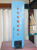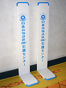 | 上下取り外し・折り畳み可能の陳列台 | パネル上部を十文字型の部材で固定。下部も同様に固定して、組み立てはすぐに完了。 |