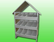 プラスチックダンボール(プラダン)製パーテーションプラスチックダンボール(プラダン)を使用した商品陳列棚です。